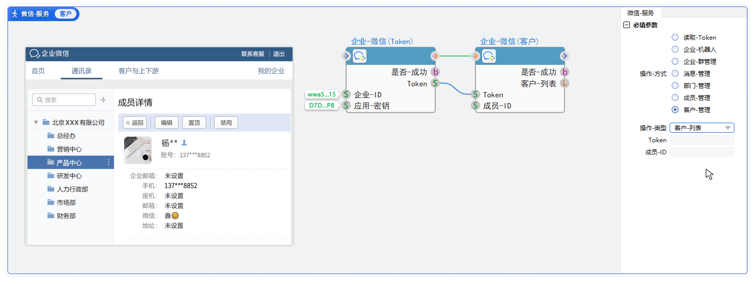对企业微信的一系列操作,如读取企业微信部门、成员、客户信息等